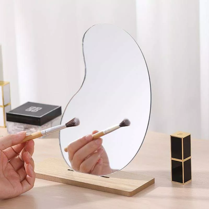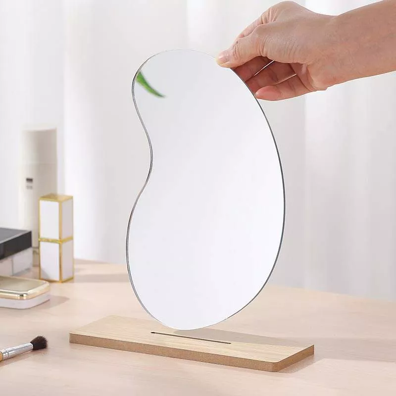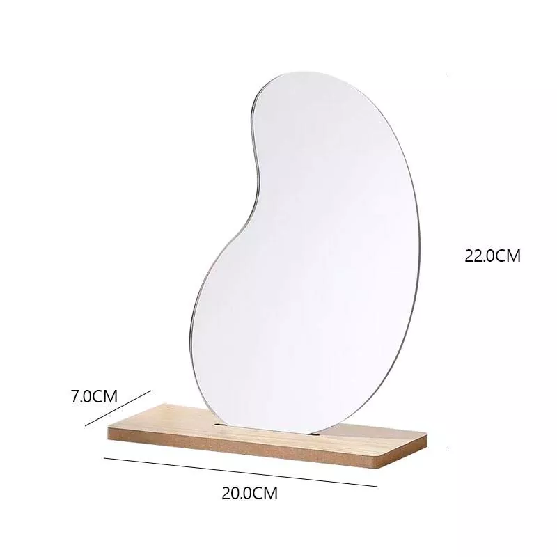 এই অনিয়মিত তরঙ্গায়িত ট্যাবলেটপ আয়নায় একটি ন্যূনতম, শৈল্পিক সিলুয়েট রয়েছে যা আধুনিক বাড়ির সাজসজ্জার সাথে নির্বিঘ্নে মিশে যায়। উচ্চ-সংজ্ঞা পরিষ্কার কাচ এবং একটি মসৃণ কাঠের ভিত্তি দিয়ে তৈরি, এটি মেকআপ প্রয়োগ, ত্বকের যত্নের রুটিন এবং প্রতিদিনের সাজসজ্জার জন্য একটি বিকৃতি-মুক্ত প্রতিফলন প্রদান করে।