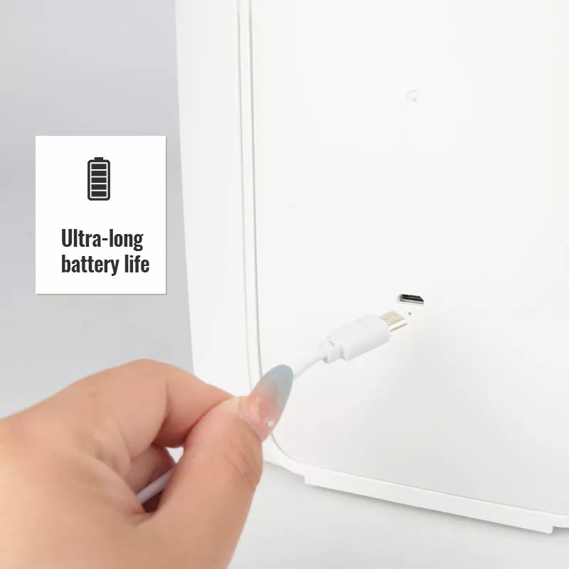 একটি অন্তর্নির্মিত রিচার্জেবল ব্যাটারি দ্বারা চালিত, এই আয়না USB-C দ্রুত চার্জিং সমর্থন করে এবং বর্ধিত ব্যবহারের জন্য অতি-দীর্ঘ ব্যাটারি জীবন অফার করে। ঘন ঘন রিচার্জ করার প্রয়োজন নেই, এটিকে দৈনন্দিন বাড়িতে ব্যবহার এবং দীর্ঘ ভ্রমণ উভয়ের জন্যই নির্ভরযোগ্য করে তোলে। শক্তি-দক্ষ LED নকশা এছাড়াও শক্তি খরচ হ্রাস.